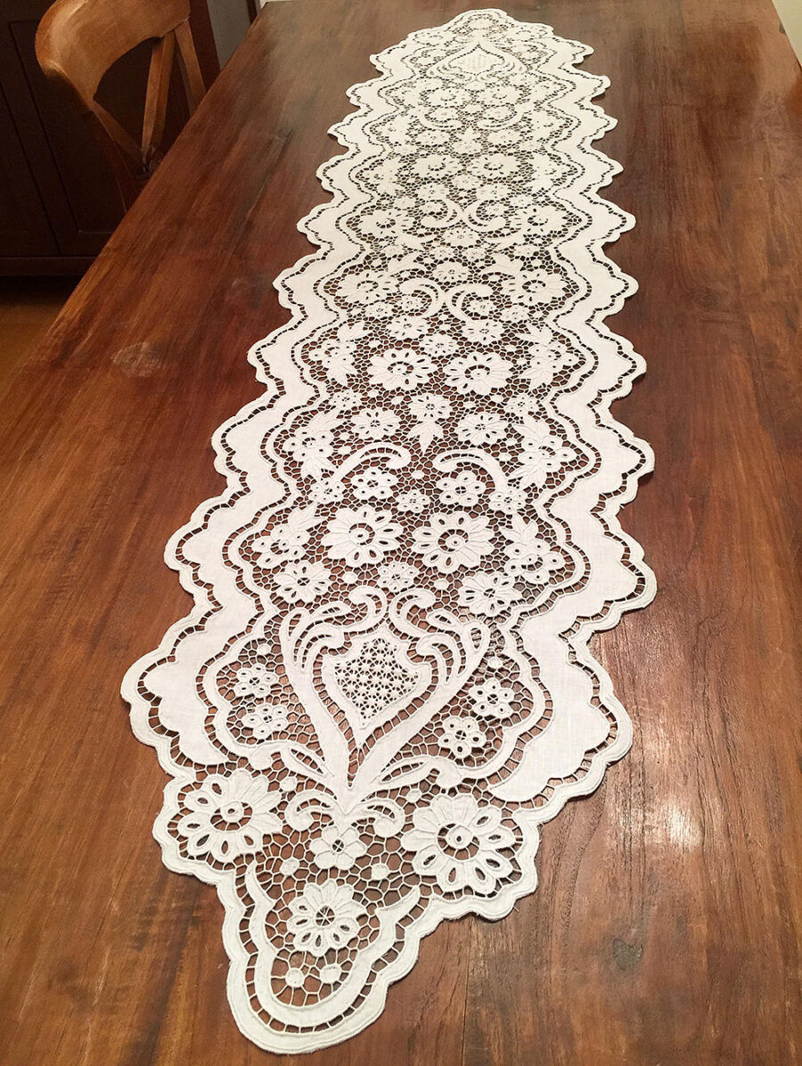 Κοφτή τραβέρσα κεντημένη με τον παραδοσιακό τρόπο σε λινό ύφασμα Γαλλίας. Όλα τα χειροποίητα κεντήματα γίνονται κατόπιν παραγγελίας και συνεννόησης όσον αφορά τις διαστάσεις και το χρόνο παράδοσης.